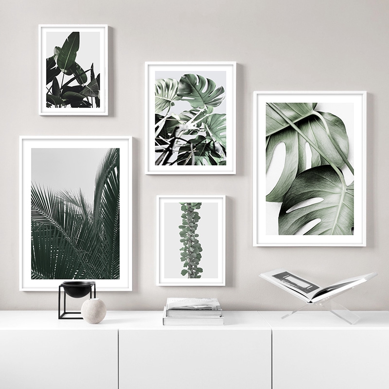 Xuwell watercolor green leaves plant wall art prints, modern botanical wall art prints decor for home.